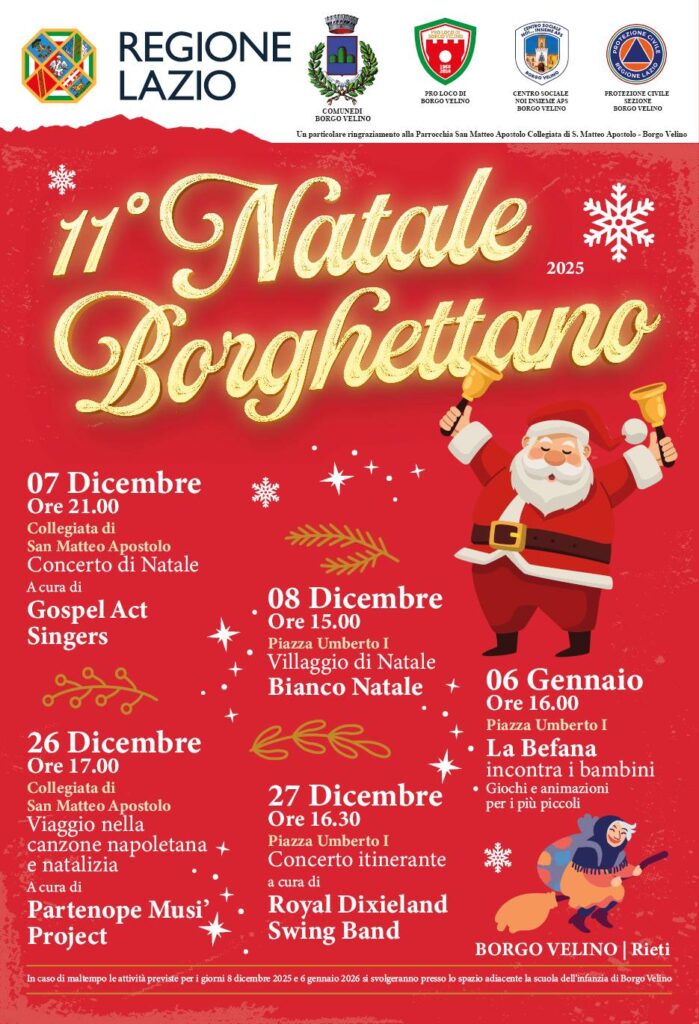 - a Borgo Velino dal 26 dicembre al 6 gennaio con Natale Borghettano 2025;