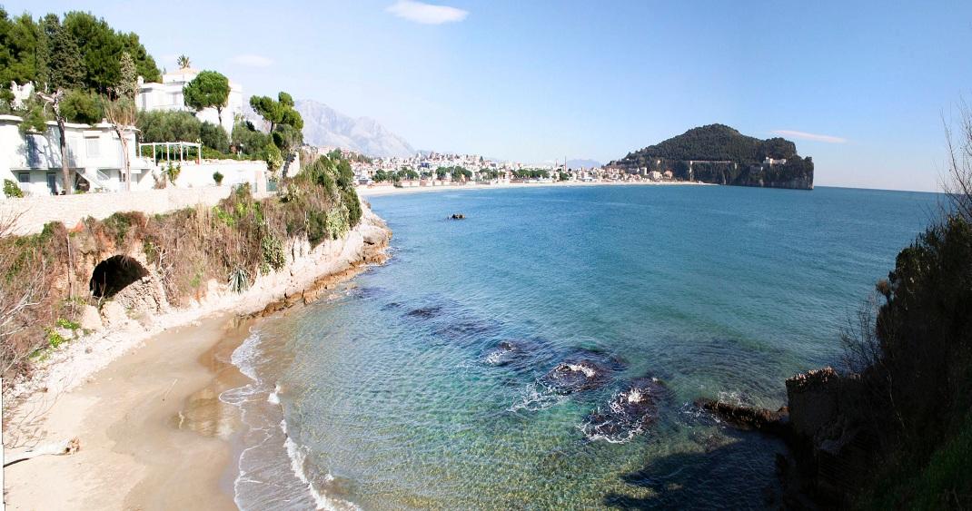 Siamo nel Parco di Monte Orlando, un’area protetta all’interno del Parco Riviera di Ulisse caratterizzata da un’enorme roccia che si tuffa da 30 metri d’altezza nel mar Tirreno, tra la spiaggia di Serapo e la Montagna Spaccata.
