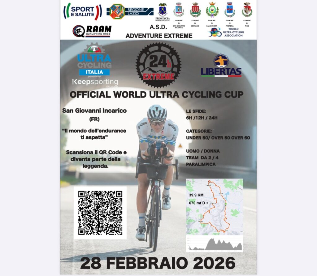 Il 28 febbraio 2026 a San Giovanni Incarico parte 24H EXTREME Ultracycling Endurance Race, la competizione che sfida la resistenza umana per la prima volta nel territorio frosinate.