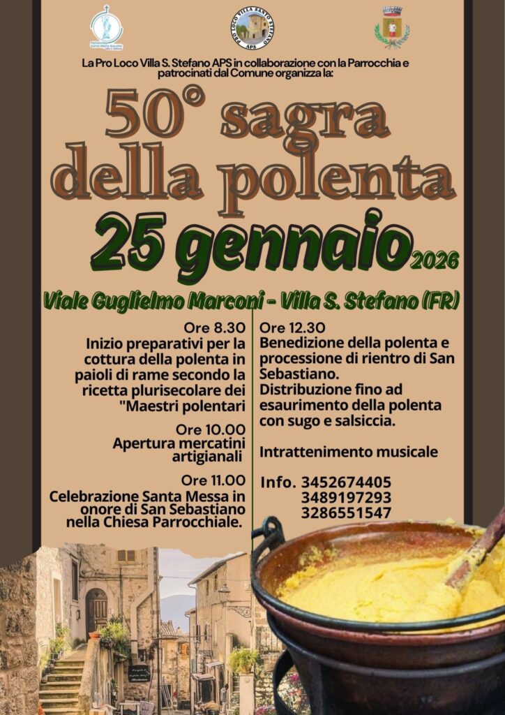 Domenica 25 gennaio a Villa Santo Stefano (FR), in Viale Guglielmo Marconi, è in programma la 50^ Sagra della Polenta.