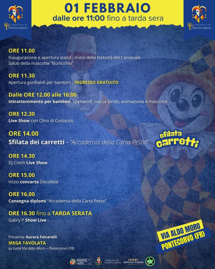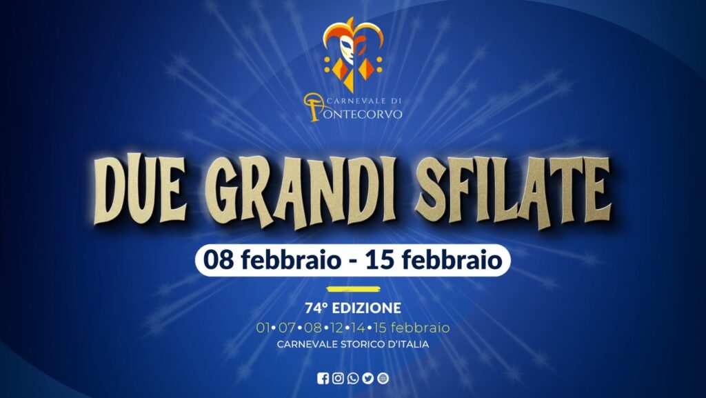 Tanti gli appuntamenti nelle giornate del 1-7-8-12-14-15 febbraio in programma per la 74^ edizione del Carnevale Storico di Pontecorvo, una tradizione che si rinnova ogni anno dal 1952 e che continua a sorprendere.