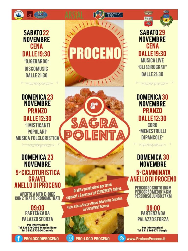 Proceno, porta del Lazio a confine con la Toscana, è pronto per la 8a edizione della Sagra della Polenta, che si terrà nei due fine settimana del 22 e del 29 novembre 2025.