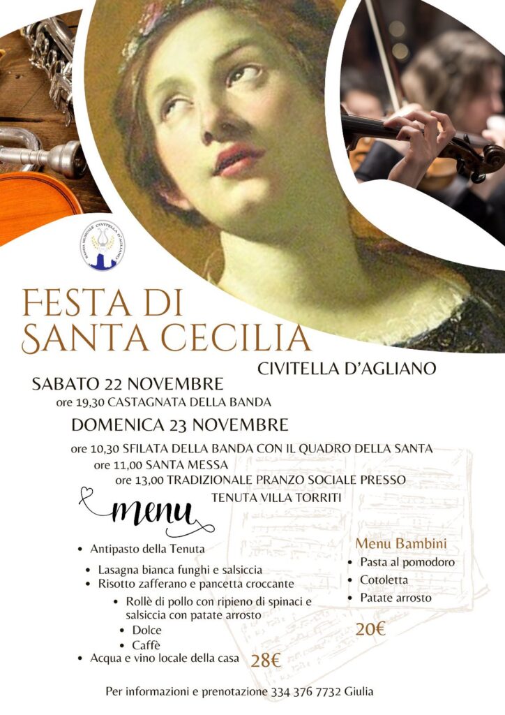 Sabato 22 e domenica 23 novembre 2025 a Civitella d’Agliano, in provincia di Viterbo si festeggia Santa Cecilia, Patrona del paese; una festa religiosa e popolare che richiama turisti d’ogni dove e assieme un gran numero di turismo delle radici.