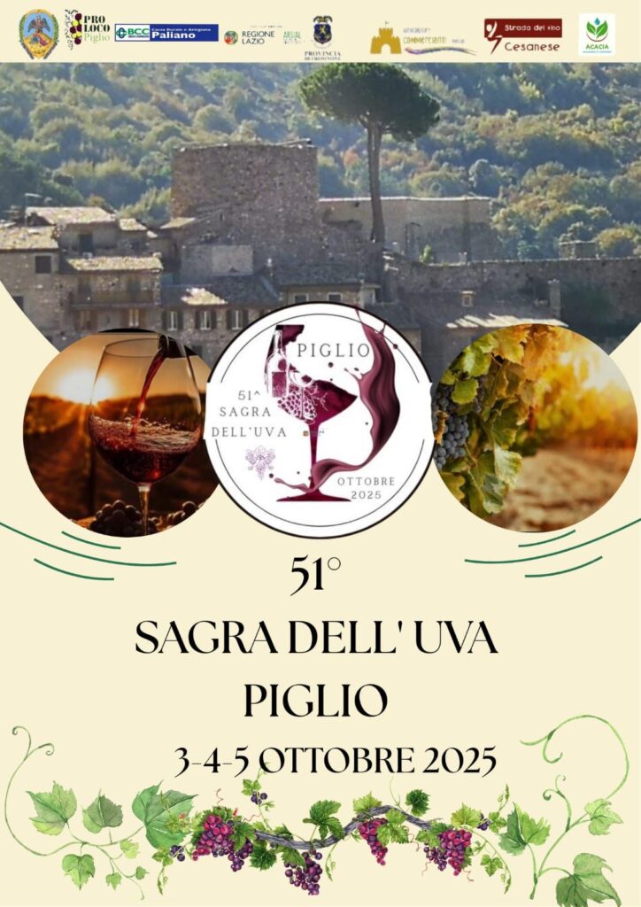 La 51ª Sagra dell’Uva Cesanese del Piglio è in programma dal 3 al 5 ottobre 2025, un appuntamento storico che celebra le tradizioni, i sapori e la cultura del territorio.