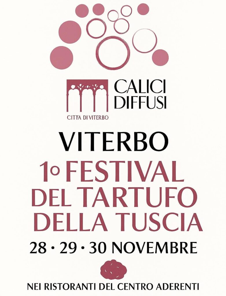 Il 28,29,30 novembre 2025 nel centro storico di Viterbo vi proponiamo un viaggio del gusto con il primo Festival del Tartufo proposto da Calici Diffusi in collaborazione con slowfoodviterboetuscia che vi aspetta al Palazzo degli Almadiani alla scoperta dei legumi della Tuscia.