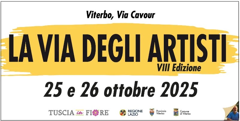 A Viterbo, in via Cavour, via Saffi e via Roma, sabato 25 e domenica 26 ottobre 2025, torna la l’VIII edizione della Via degli Artisti, un laboratorio a cielo aperto che animerà la città.
