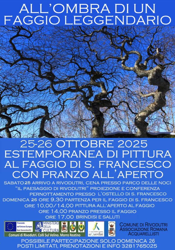 Sabato 25 ottobre e domenica 26 ottobre, Rivodutri accoglie l’evento “All’ombra di un Faggio secolare”, estemporanea di pittura ad acquerello.