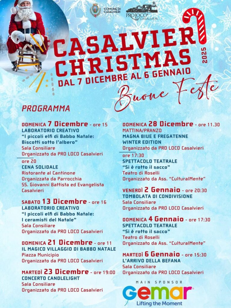 Dal 7 dicembre 2025 al 6 gennaio 2026 a Casalvieri si svolge Casalvieri Christmas, uno degli eventi più attesi tra quelli dedicati al Natale in Valle di Comino, con tanti appuntamenti dedicati a tutta la famiglia.