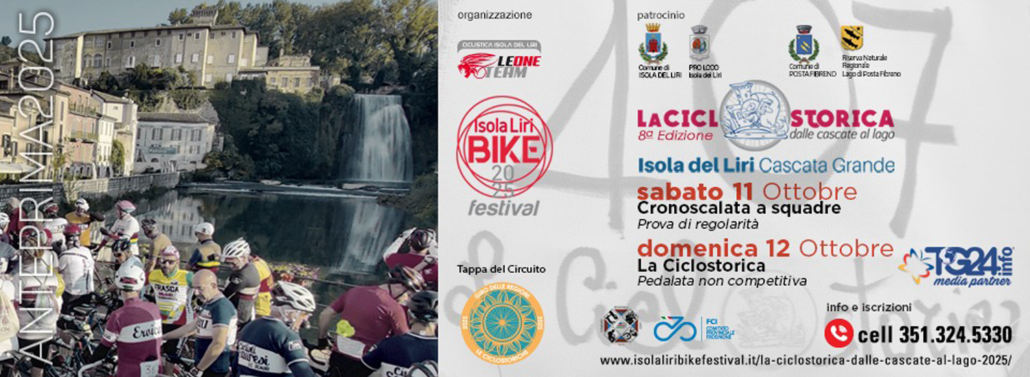 Questo sabato 11 e domenica 12 ottobre si svolgerà l’8° edizione della Ciclostorica “dalle cascate al lago” – Isola del Liri (FR) .