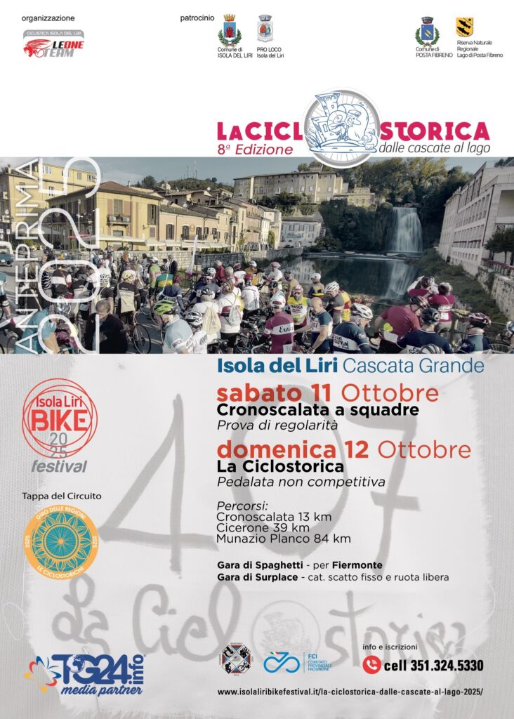 Questo sabato 11 e domenica 12 ottobre si svolgerà l’8° edizione della Ciclostorica “dalle cascate al lago” – Isola del Liri (FR) .
