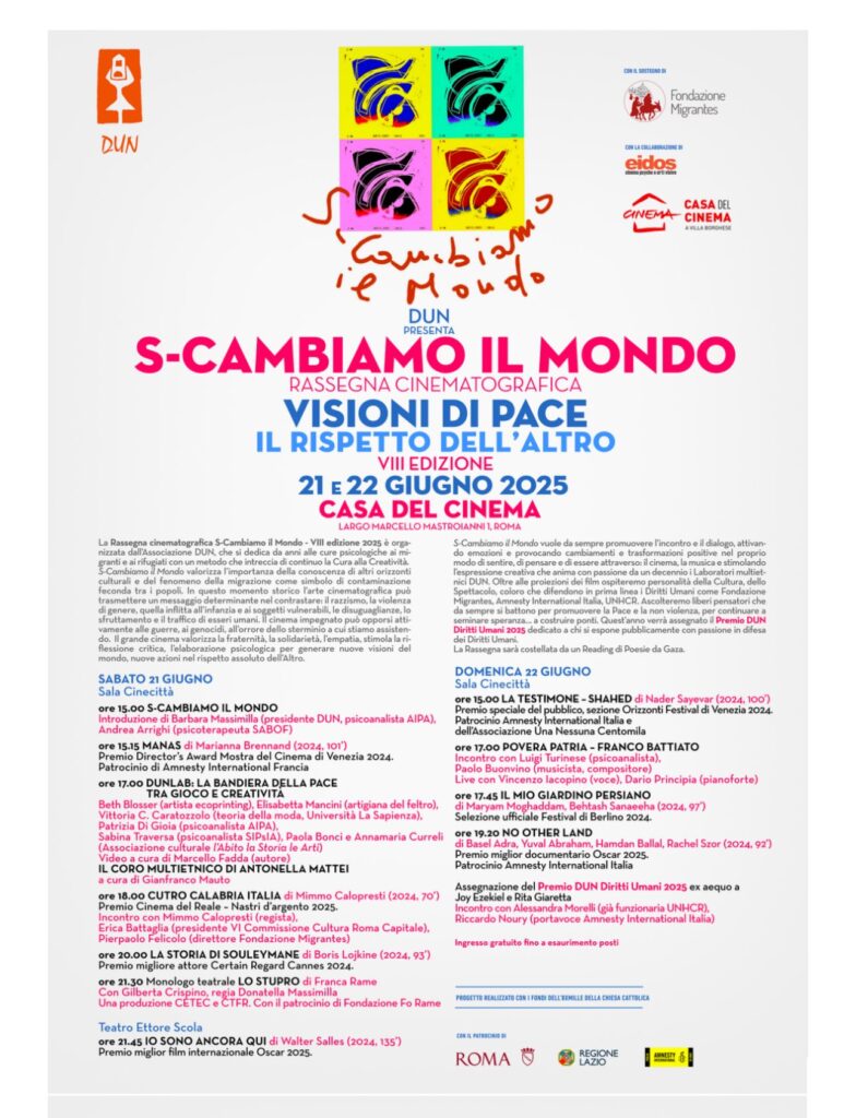 Due giornate per riflettere sui diritti umani e cambiare visioni, prospettive, azioni. Il 21 e il 22 giugno 2025 alla Casa del Cinema di Largo Marcello Mastroianni 1, a Roma, torna S-Cambiamo il Mondo, il festival, giunto alla settima edizione. che promette giornate intense di proiezioni e dibattiti.