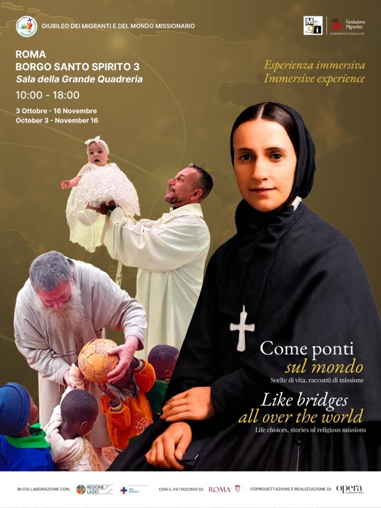 Dal 3 ottobre al 16 novembre 2025 è visitabile a Roma, presso la Sala della Quadreria nel complesso Santo Spirito in Sassia, la mostra immersiva “COME PONTI SUL MONDO. Scelte di vita, storie di missione“.