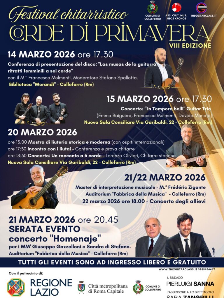 Dal 14 al 21 marzo 2026 a Colleferro si svolge Corde di Primavera, festival chitarristico che propone un programma d’eccezione.