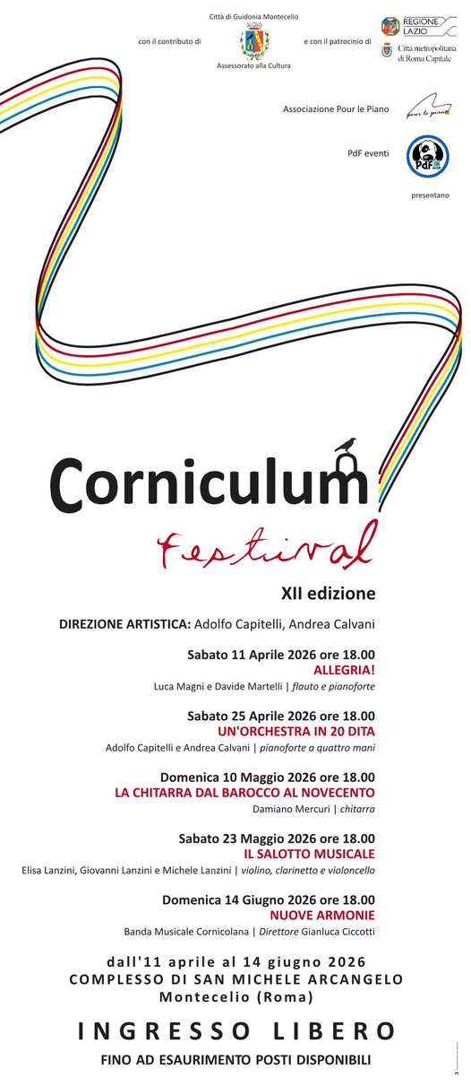 A Guidonia Montecelio dall’11 aprile al 14 giugno 2026 si dà il via alla XII edizione del Corniculum Festival, la prestigiosa rassegna musicale curata dall’Associazione Pour le piano.