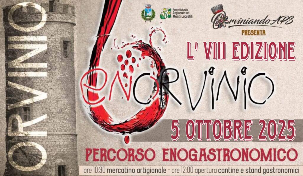 Domenica 5 ottobre 2025 si svolge l’8° EnOrvinio, il percorso enogastronomico alla scoperta del centro storico di Orvinio, uno dei Borghi più Belli d’Italia.