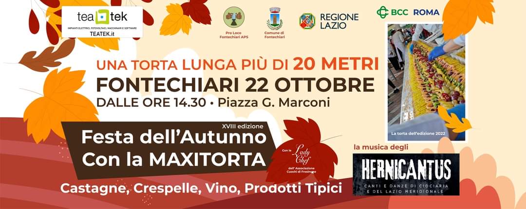 Torna il 22 ottobre 2023 a Fontechiari la 28^ Festa dell’Autunno, il piccolo borgo nella valle di Comino che festeggia castagne e vino con crespelle e prodotti tipici locali.