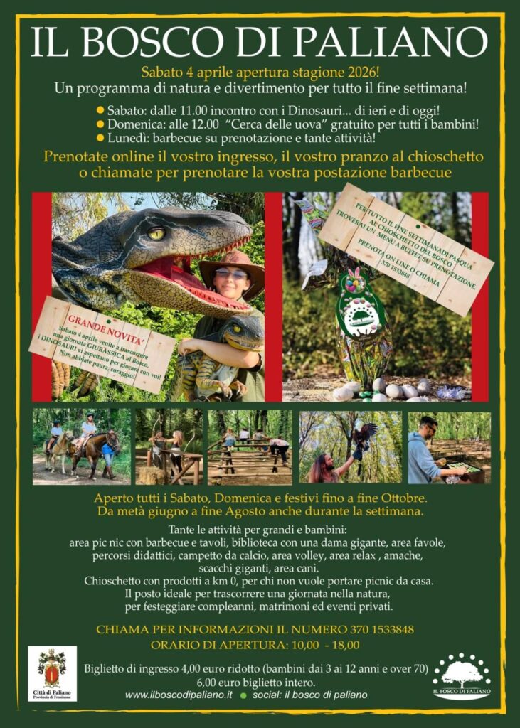 Dal 4 al 6 aprile 2026, in occasione delle festività di Pasqua, il Bosco di Paliano riapre al pubblico le sue porte, inaugurando la stagione 2026 con un calendario ricco di iniziative.