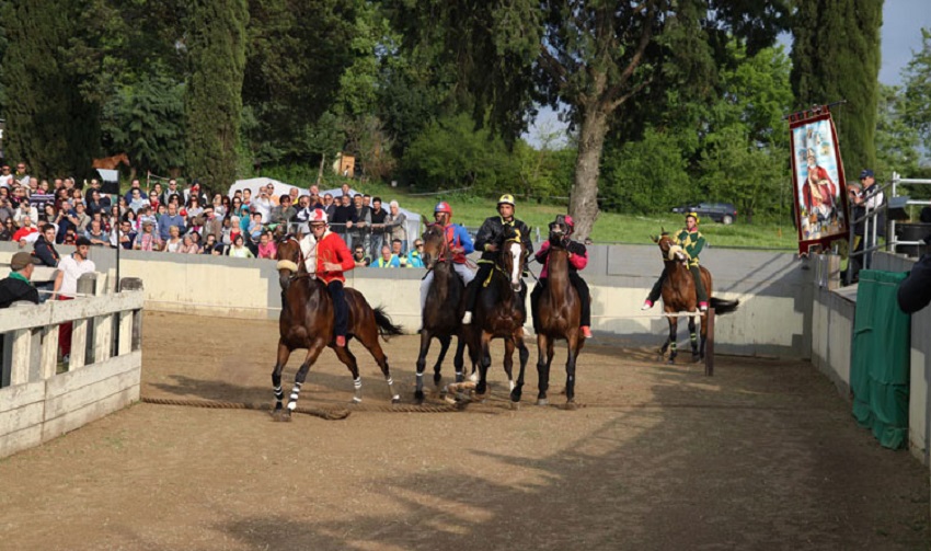 La manifestazione, simile nella struttura e nell’organizzazione ad altre celebri competizioni, consiste in una corsa di cavalli montati da famosi fantini, in rappresentanza dei cinque rioni in cui è diviso il paese: Dentro, Borgo, Poggio, Croci e Madonna del Piano.