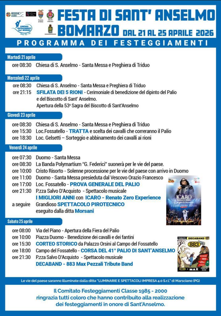 A Bomarzo, dal 21 al 25 aprile 2026, si svolgeranno i festeggiamenti di uno tra gli eventi più significativi della primavera in Tuscia, il Palio di sant’Anselmo.