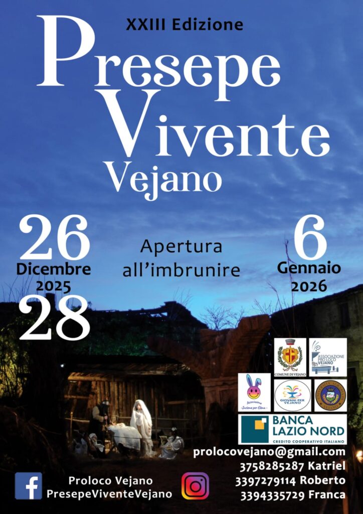 Anche quest’anno il piccolo Borgo di Vejano, rivive l’intensa spiritualità del Natale, grazie al presepe vivente, giunto alla sua 23ª edizione.