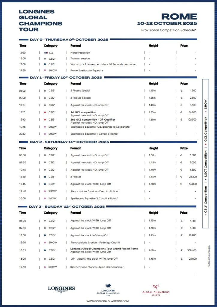 Dal 10 al 12 ottobre nell’incantevole contesto del Circo Massimo inizia la 14esima tappa dell’edizione 2025 del circuito di salto a ostacoli più prestigioso al mondo, dove si esibiranno i cavalieri e le amazzoni più celebri.