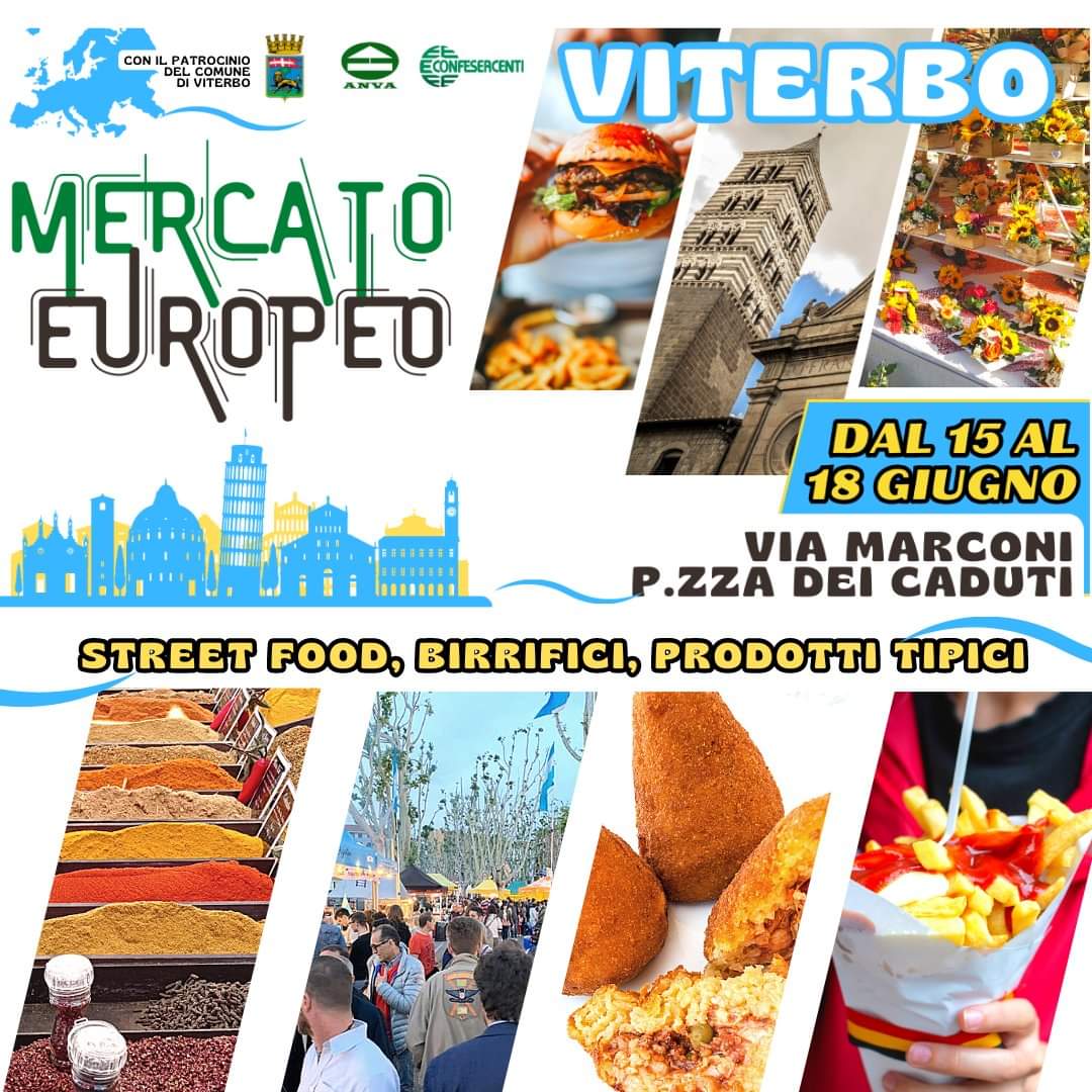 Da giovedì 15 a domenica 18 giugno 2023, Viterbo ospiterà il Mercato Europeo dei prodotti tipici ed enogastronomici.
