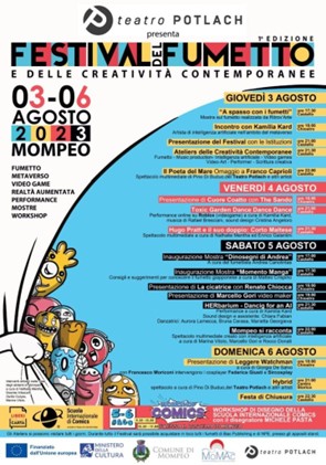 Dal 3 al 6 agosto 2023 a Mompeo si svolge la prima edizione del Festival del Fumetto e delle Creatività Contemporanee, organizzato dal Teatro Potlach. Per quattro giorni si può visitare il Borgo di Mompeo e assistere gratuitamente a mostre dedicate ai fumetti e dibattiti pubblici con grandi autori italiani come The Sando, o il regista e sceneggiatore Renato Chiocca.
