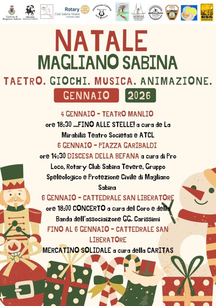Il Natale a Magliano Sabina è una festa che unisce tutta la comunità: bambini, ragazzi, famiglie, anziani, scuole, associazioni e volontari. Teatro, musica, giochi, animazione, scuola, e tante tradizioni.