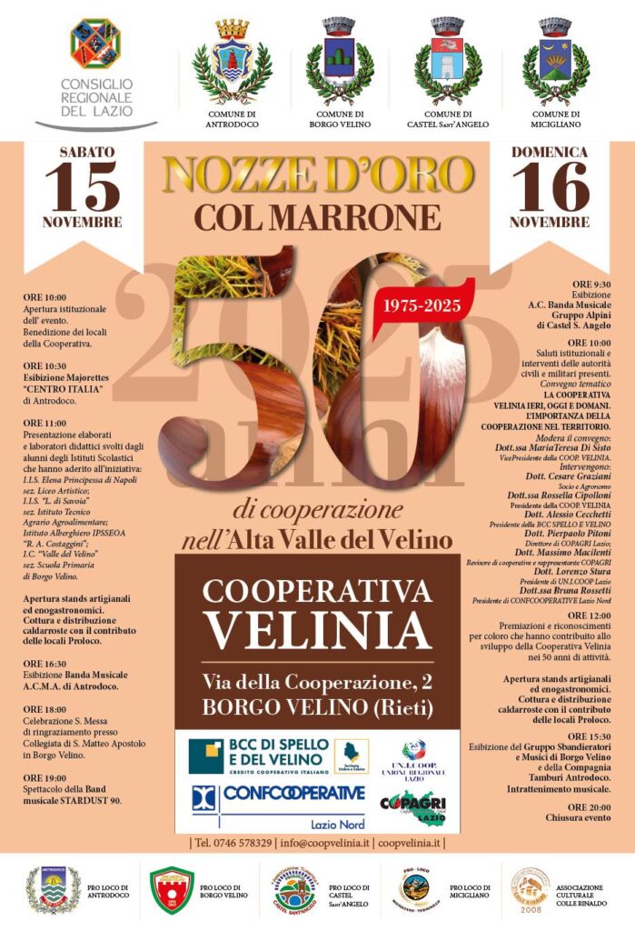 A Borgo Velino, sabato 15 e domenica 16 novembre 2025, si festeggiano i 50 anni di cooperazione nell’Alta Valle del Velino.