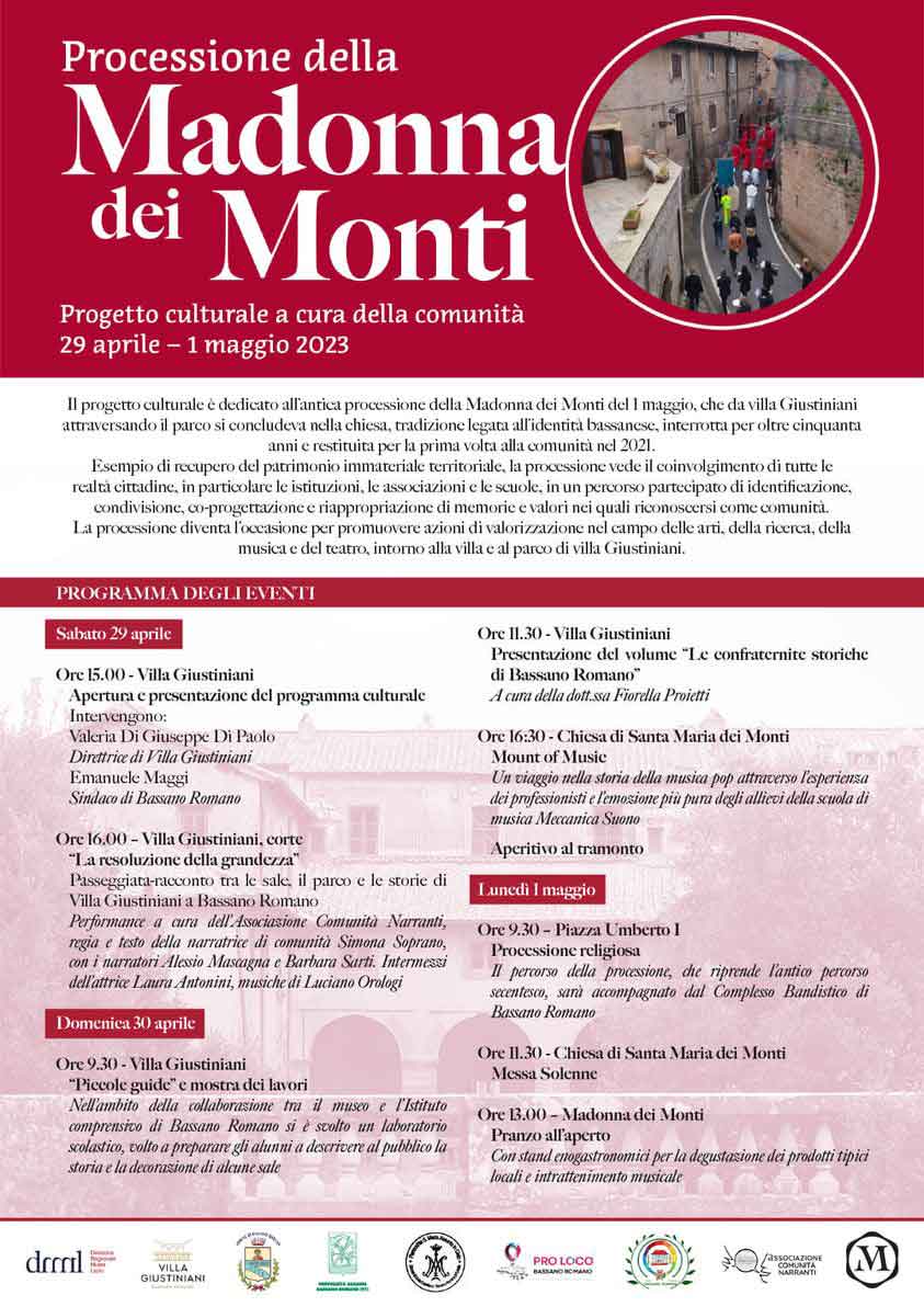 Dal 29 aprile al 1° maggio 2023 si svolgerà a Bassano Romano, la presentazione del progetto culturale dedicato all’antica processione della Madonna dei Monti.