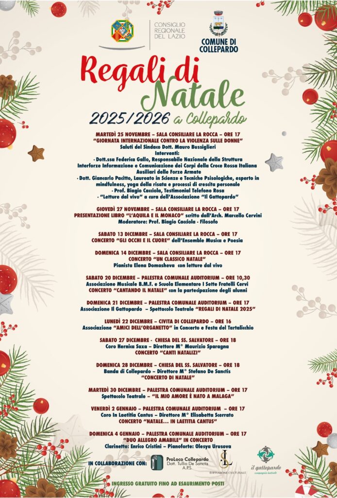 A Collepardo la stagione culturale natalizia prosegue fino al 4 gennaio 2026 e prevede una programmazione che propone un’offerta variegata di eventi musicali, teatrali e letterari.