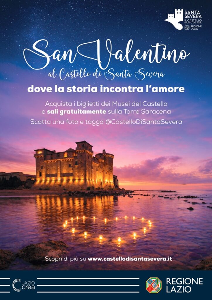 Il 14 febbraio 2026, il Castello di Santa Severa a Santa Marinella celebra la festa degli innamorati sulla Torre Saracena, Dove la storia incontra l’amore, un evento speciale che unisce storia, paesaggio e romanticismo.
