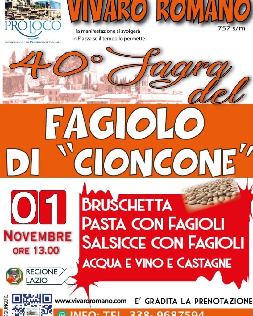 Inizia il 1° novembre 2025 dalle ore 13:00 la 40^ Sagra del Fagiolo di “cioncone” a Vivaro Romano.