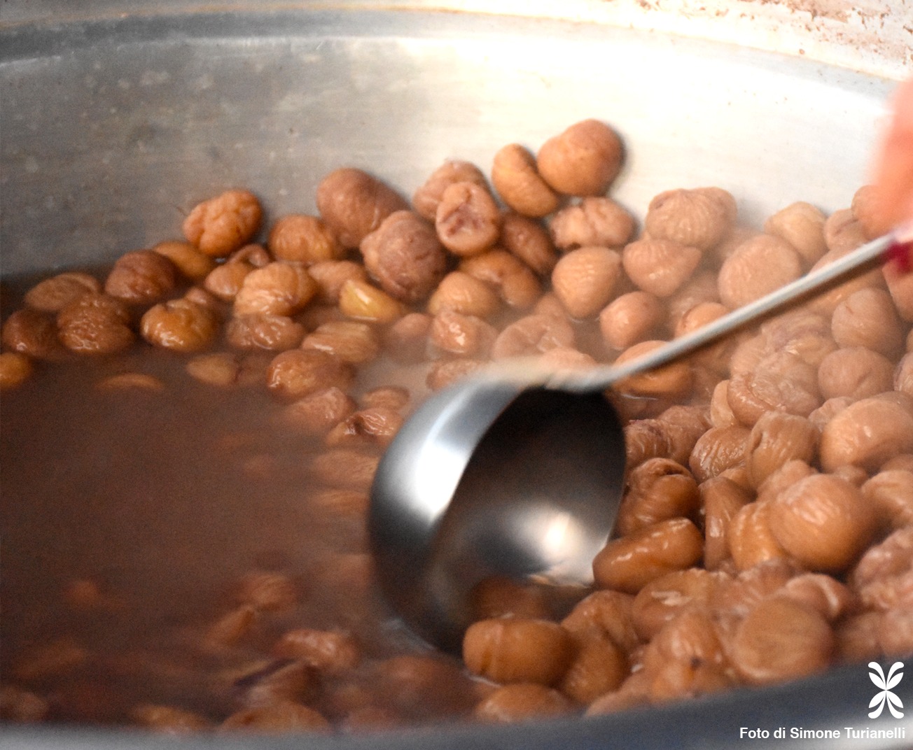 Il menù prevede una vellutata di ceci con crostini alle castagne, polenta al sugo e salsiccia, stracotto di vino cesanese, sformatino di broccoli e patate e dolce alle castagne.