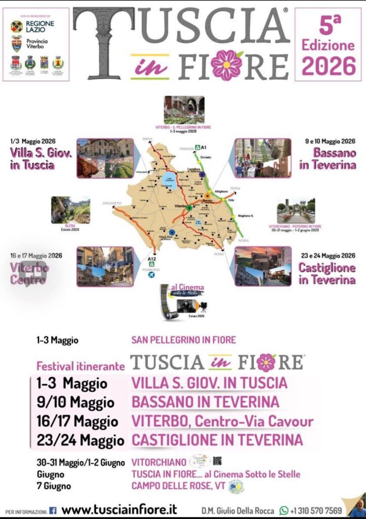La quinta edizione di Tuscia in Fiore 2026 che si svolgerà tra i borghi della Tuscia dall’1 al 24 maggio 2026 sta per arrivare e quest’anno il festival si fa itinerante per portarti alla scoperta di angoli segreti, tradizioni secolari e profumi indimenticabili avvolti da una atmosfera indimenticabile.