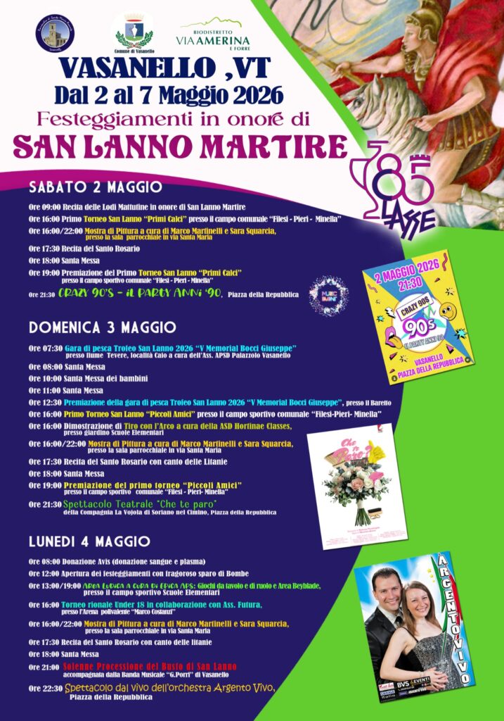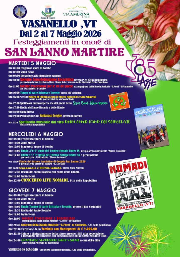 Se hai un legame con Vasanello (VT), dal prossimo 2 al 7 maggio 2026 segna le date da non perdere sul calendario. È il momento dei Festeggiamenti in onore di San Lanno Martire.