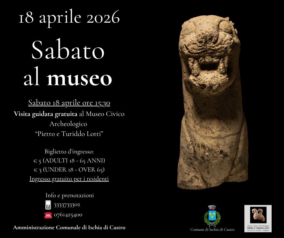 Sabato 18 aprile 2026, alle ore 15:30, si svolgerà a Ischia di Castro, presso il Museo Civico Archeologico Pietro e Turiddo Lotti, una visita guidata alla scoperta dei numerosi tesori custoditi.