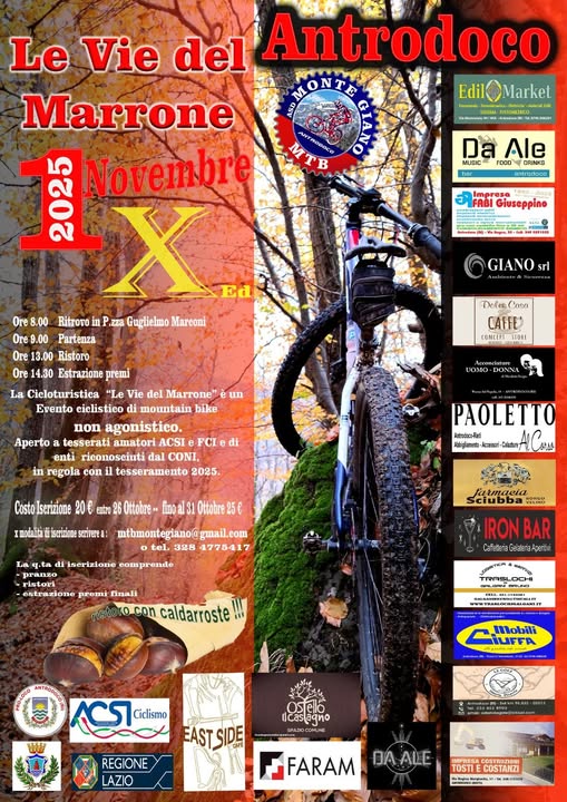 - il 1° novembre 10^ Le Vie del Marrone, la tradizionale Cicloturistica in MTB;