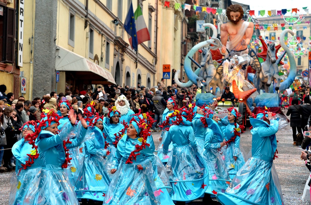 Costumi e maschere, dalla fattura preziosa e variopinta, sfilano tra le strade coloratissime del borgo accompagnati dalla musica incessante di numerose bande musicali e dagli immancabili e maestosi carri allegorici.
