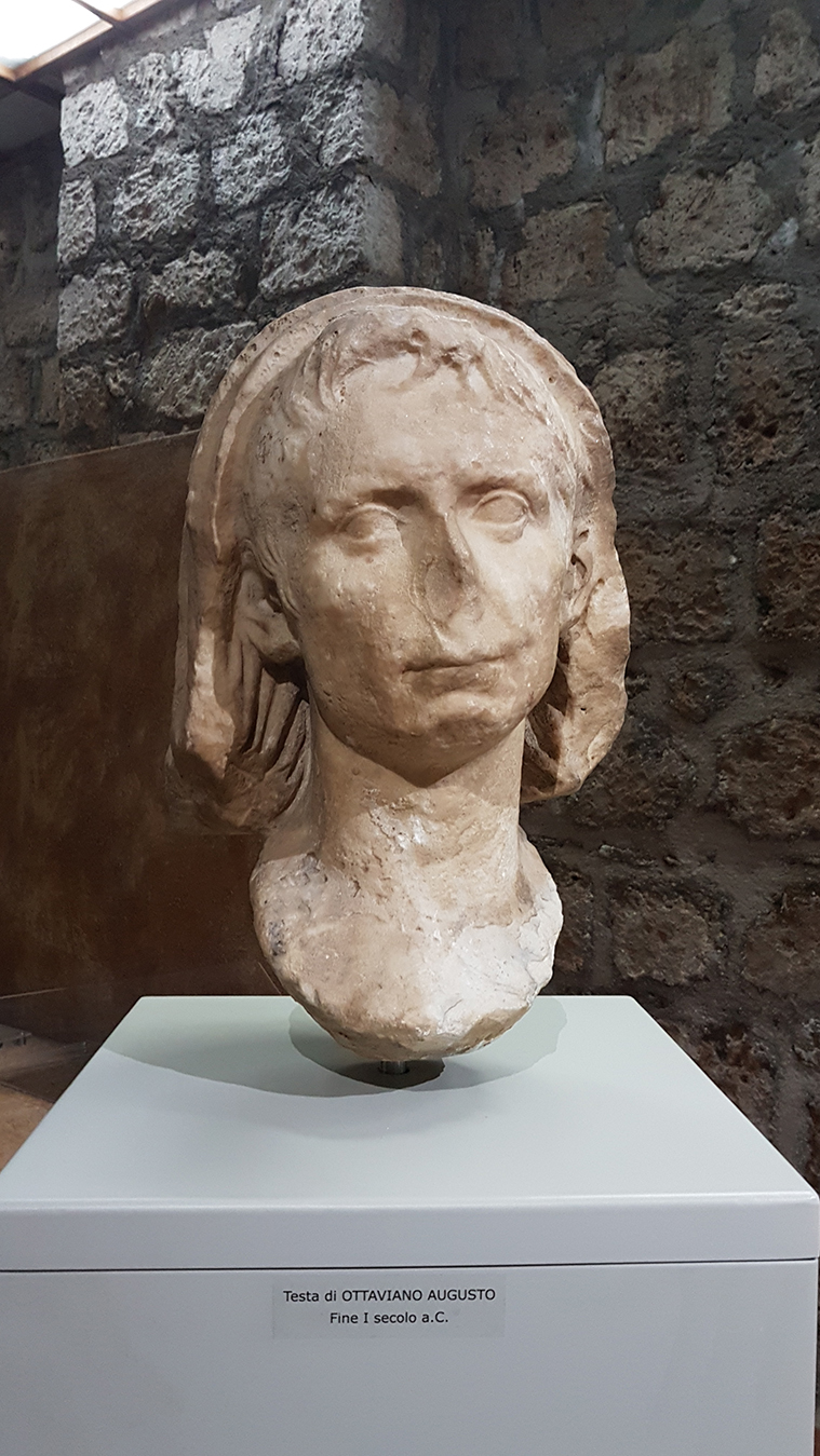 La testa in marmo di Augusto è il pezzo di maggior pregio di questa sezione ed è stato restituito dal museo Museo d’Art et d’histoire di Bruxelles nel 2016 dopo che era stato rubato negli anni Settanta dalla stata esposta nella facciata del palazzo comunale di Nepi. Il taglio dei capelli della testa dimostra che si tratta di una delle prime rappresentazioni di Ottaviano (68 a.C.).