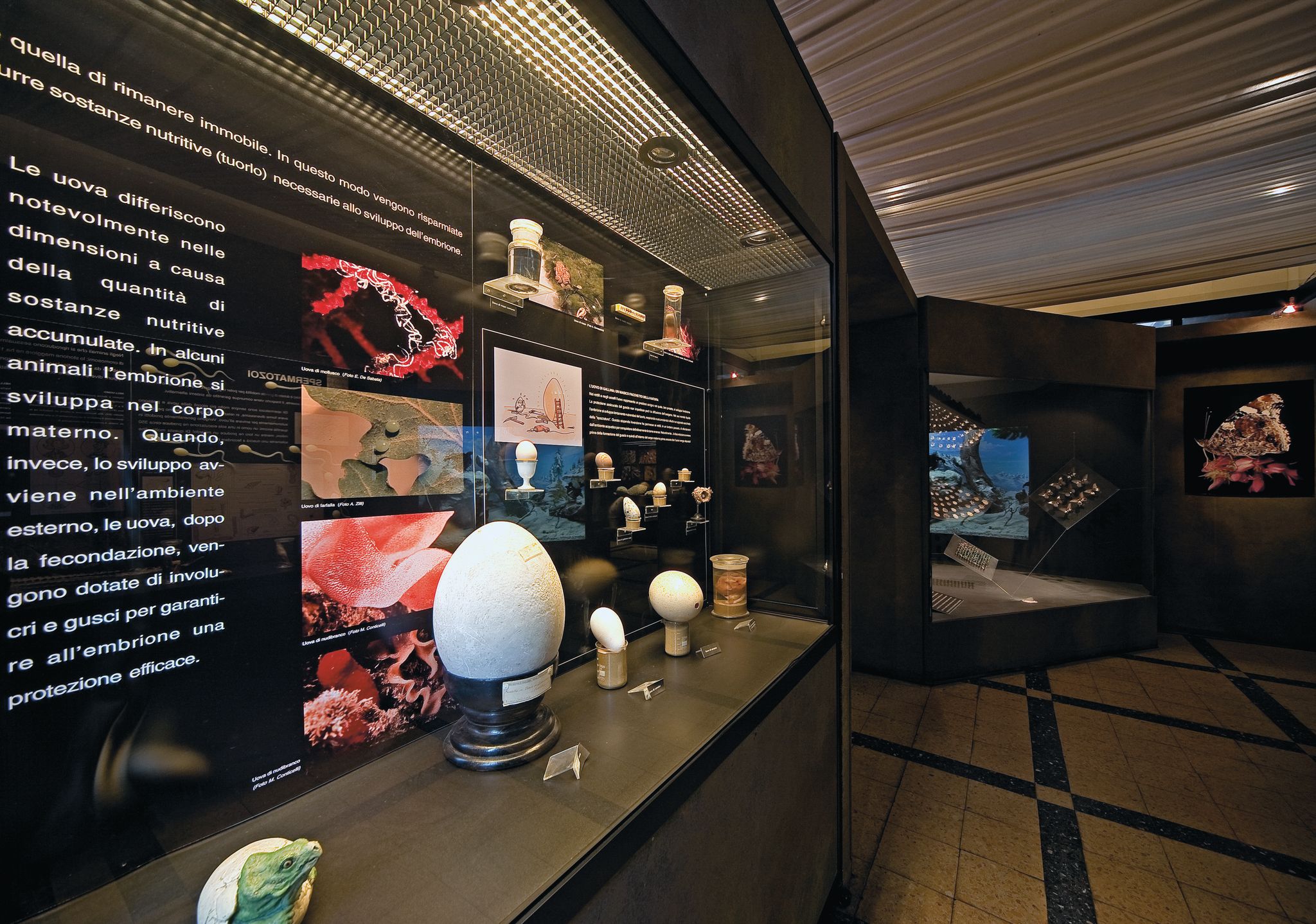 L’esposizione comprende diverse sezioni: amori bestiali, dedicata all’inizio della vita e a tutto ciò che rende più favorevole la riproduzione; vivere al limite, dove viene raccontato come gli animali siano riusciti a colonizzare gli ambienti più estremi e non esista luogo sulla terra che non ne sia popolato; la barriera corallina, in cui si evidenzia la biodiversità e varietà degli ambienti, paragonabili alle foreste pluviali e si sottolinea quanto il loro ecosistema sia delicato; la biodiversità dietro casa: le zone umide di Roma; la collezione ornitologica Arrigoni degli Oddi dove, a differenza delle nuove sale, si offre uno sguardo attualizzato sulla concezione “ottocentesca” di museo; la sala degli scheletri in cui spicca il grande scheletro di elefante.