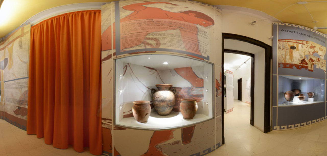 Su due piani espone i corredi funerari provenienti dalle necropoli etrusche sparse nel territorio: Vigna la PiazzaPianezzeCentocamere.