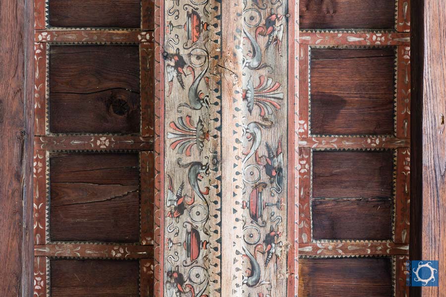 Il Palazzo Farnese di Gradoli è un palazzo rinascimentale sia nella costruzione architettonica che nella realizzazione decorativa delle stanze. Queste ultime sono abbellite con affreschi parietali di pregio e soffitti lignei a cassettoni. I soffitti sono decorati con soggetti iconografici che contengono complicati significati simbolici e che fanno spesso riferimento alla corrente neoplatonica, riferibile a questo periodo. Accanto ai motivi floreali e alle scenette di contenuto mitologico-allegorico è possibile ammirare i riferimenti araldici alla famiglia Farnese.