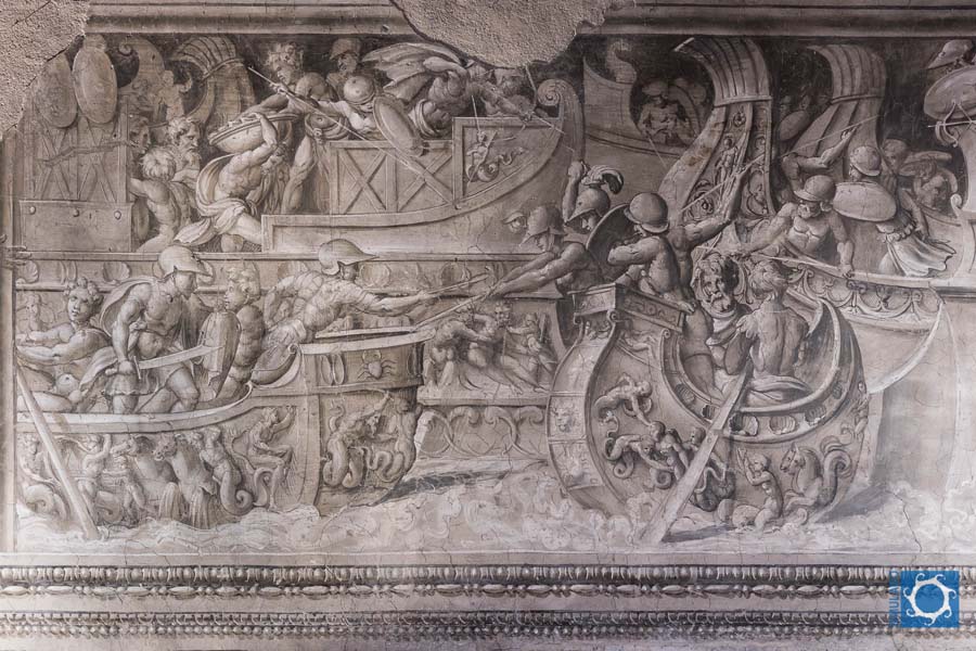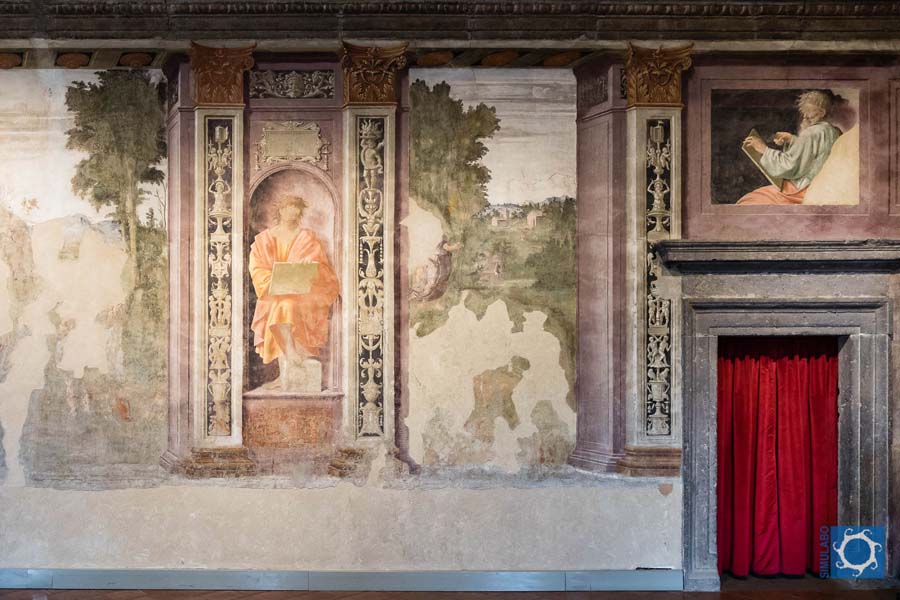 Sulle pareti fanno comparsa numerose grottesche tipiche dell’epoca. La pittura murale, in riferimento all’aspetto delle decorazioni, documenta la presenza di maestranze provenienti dai grandi cantieri romani del secondo decennio del Cinquecento. Le pitture di Gradoli rappresentano un’importante traccia della storia della pittura palaziale rinascimentale, in continuità ideale con il cantiere romano che vide notevoli maestranze orbitare intorno alla figura del senese Baldassarre Peruzzi.