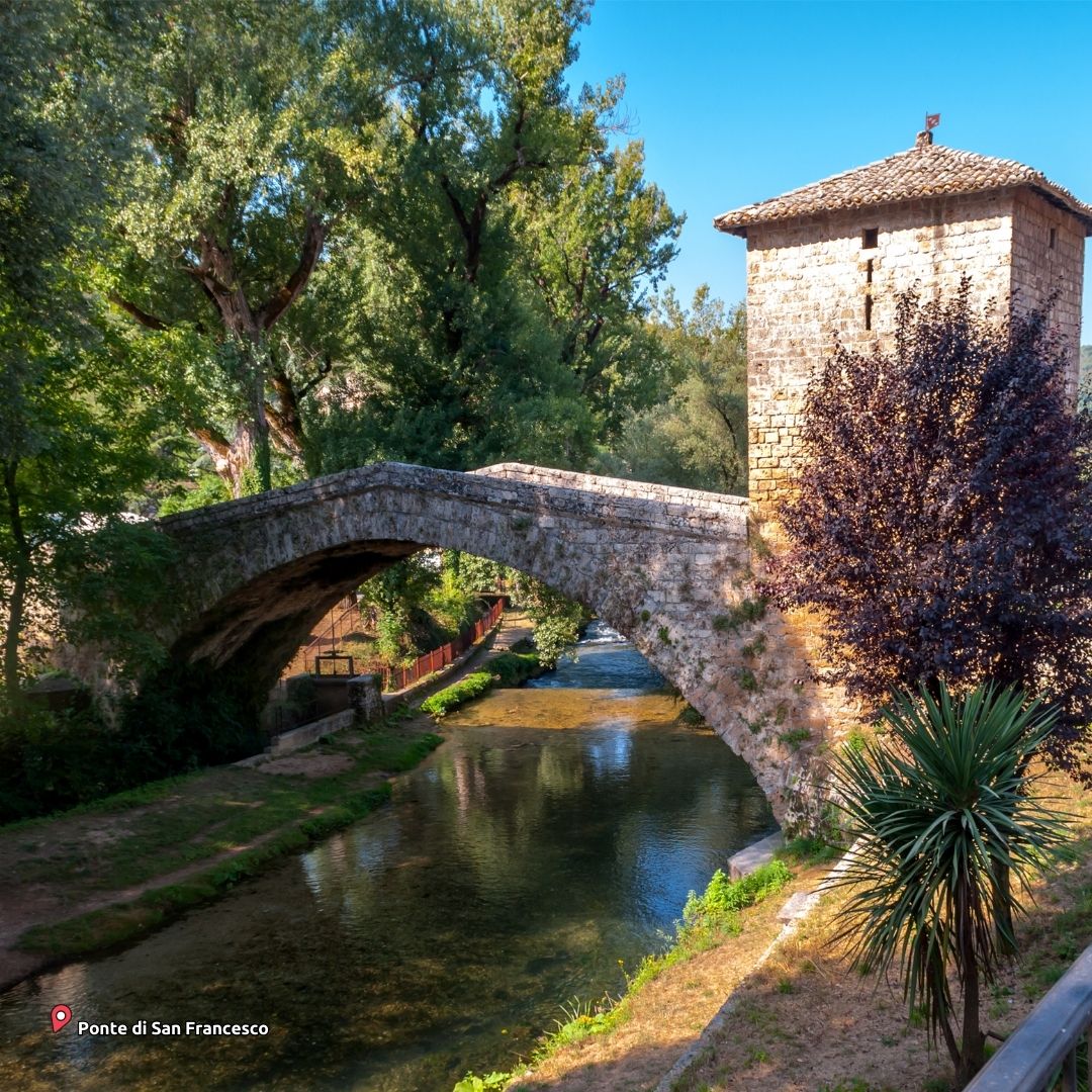 - Terza tappa è il Ponte di San Francesco costruito nel 1358 che fa ombra alle limpide acque del fiume Aniene. Potrete concedervi un momento di relax sotto agli alberi a contemplare la bellezza di quest’opera con una sola arcata, ampia 37 metri.